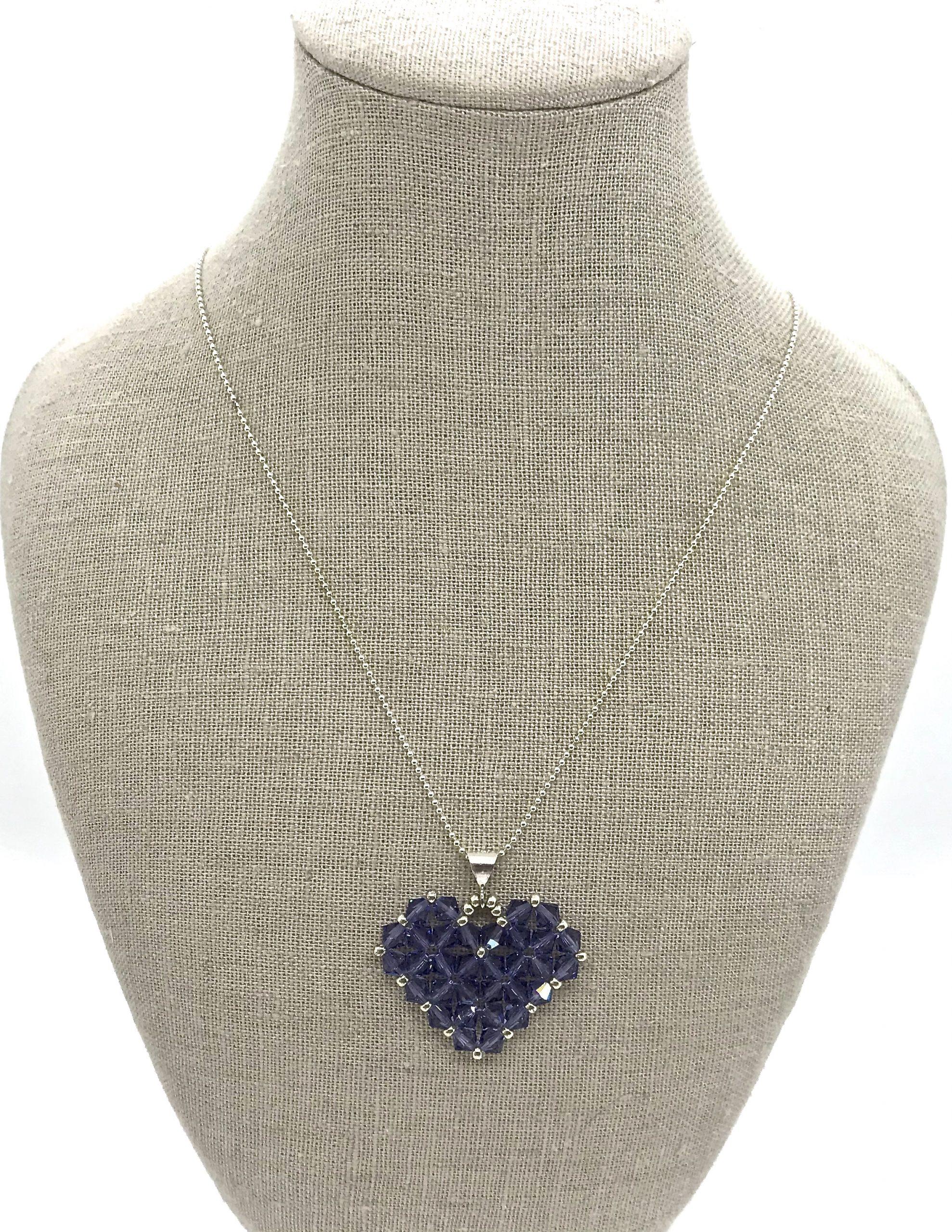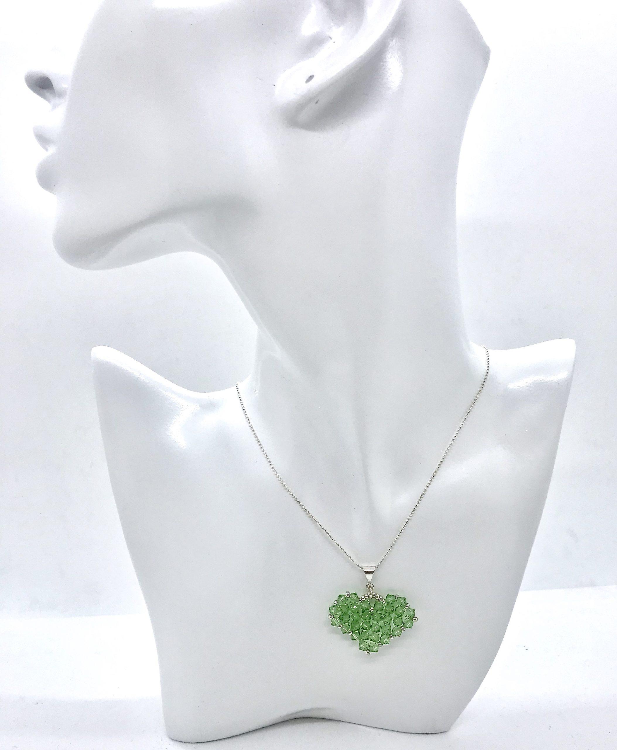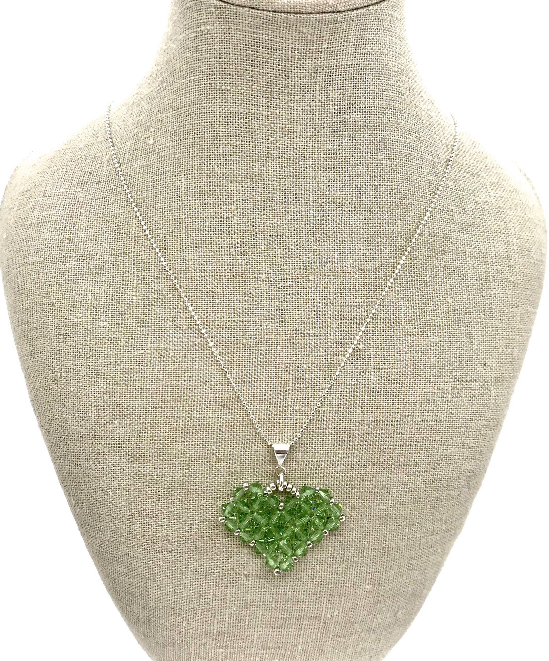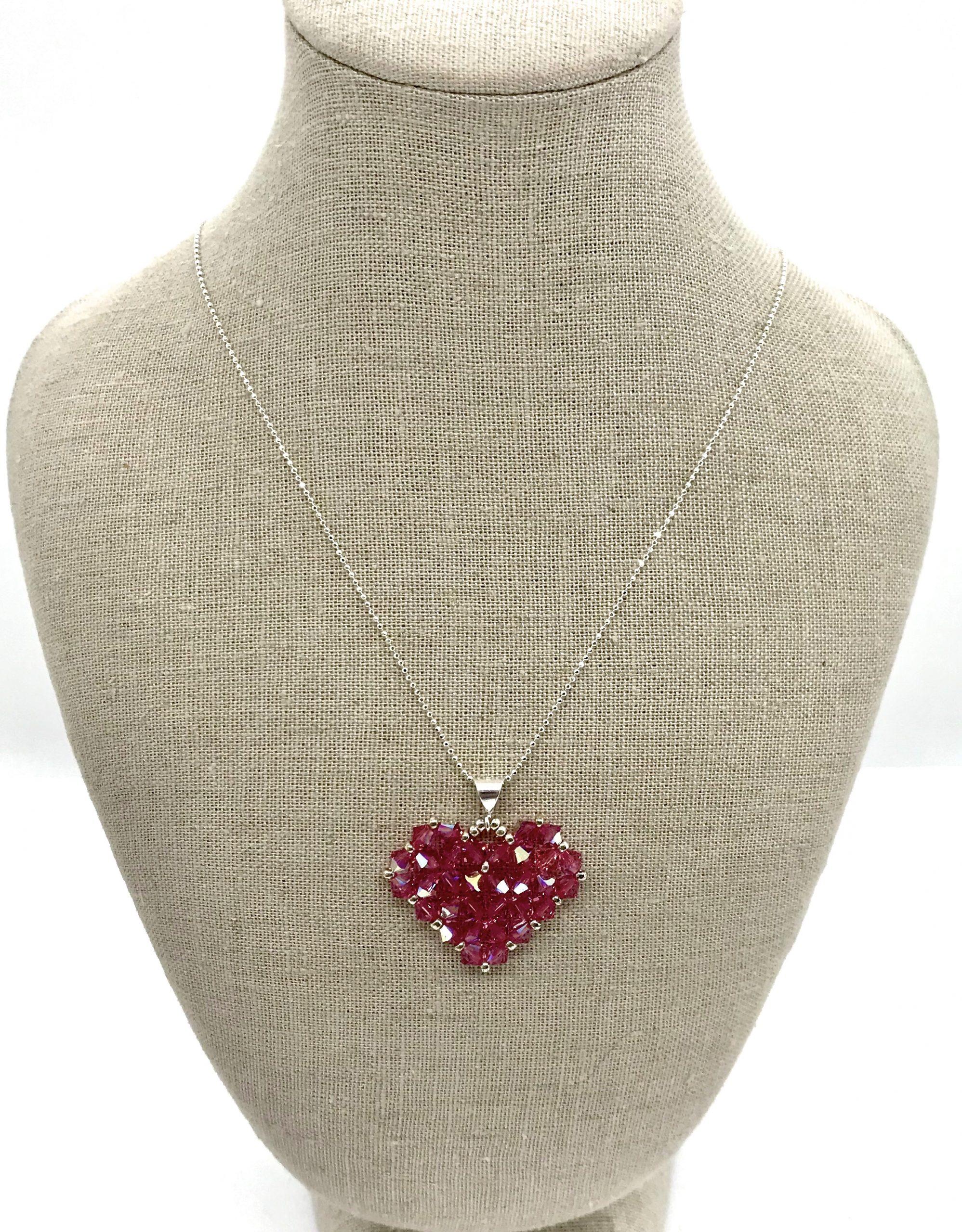 This lovely heart pendant is created using Finest Austrian Crystal Beads 4mm bicone beads, sterling silver bail and 45cm diamond cut ball chain with trigger clasp.