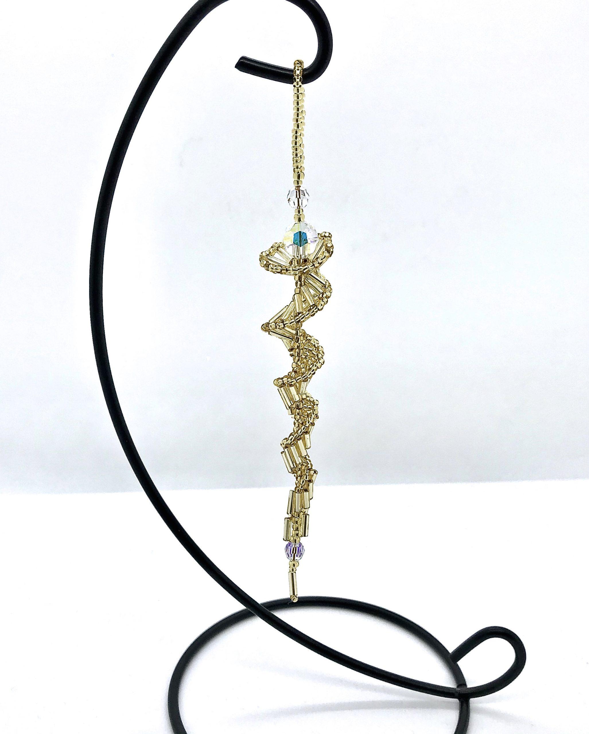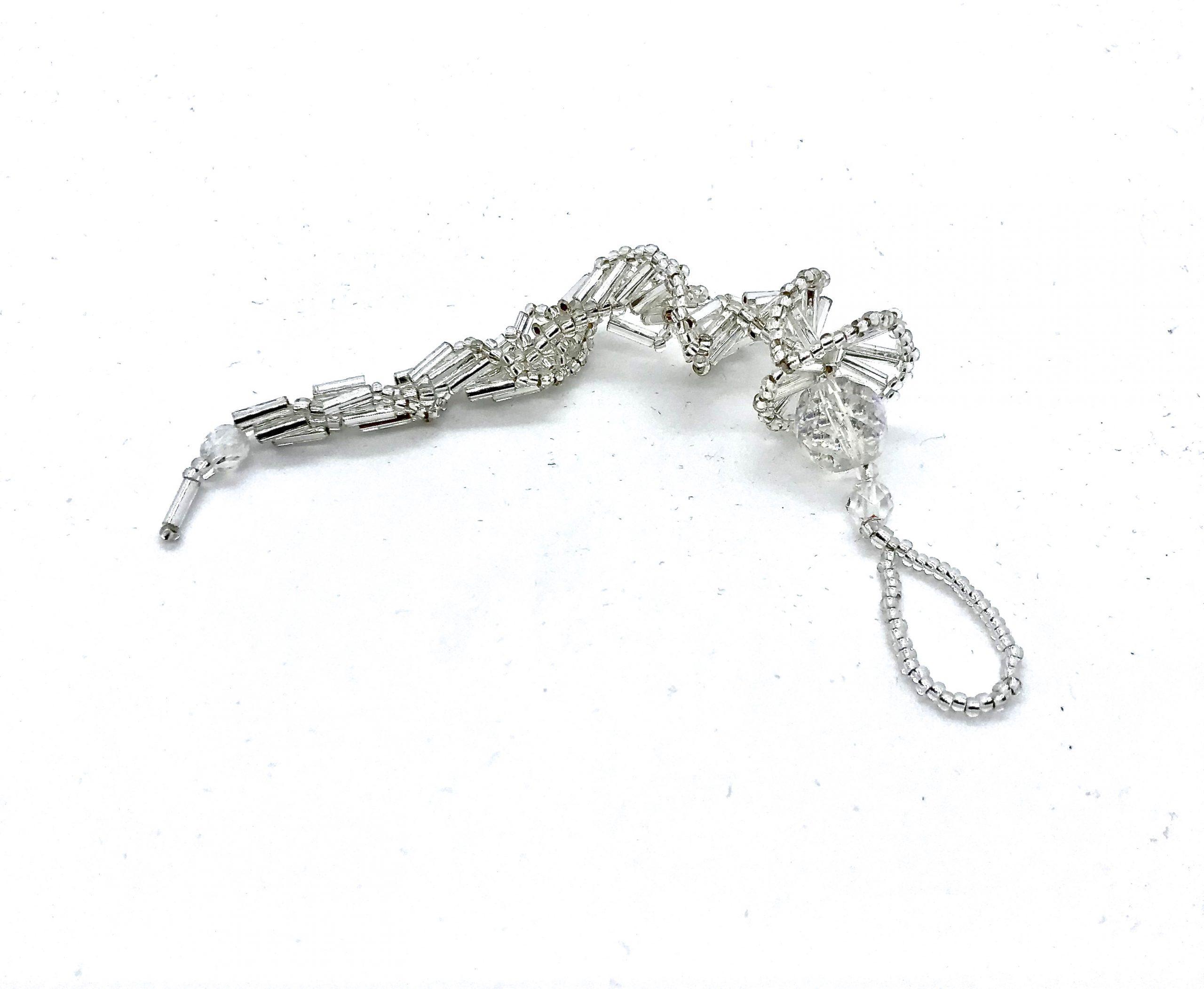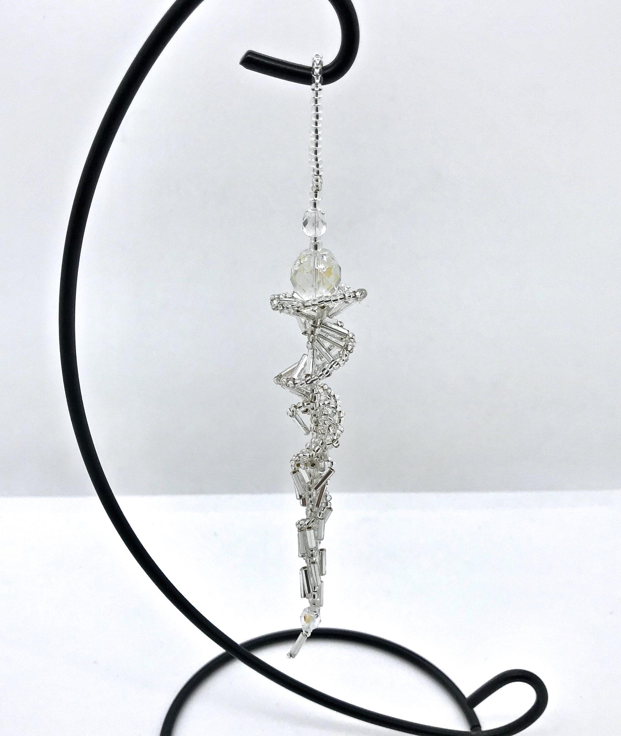 These lovely sparkly Icicle ornaments are created using Finest Austrian Crystal AB rounds and glass bugle beads